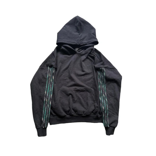 BLACK PLAID TRACK HOODIE